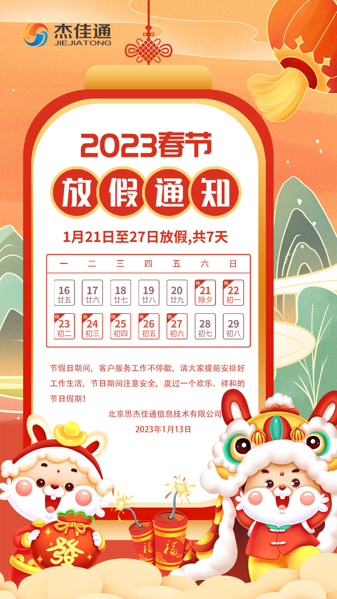 - 2023年春節(jié)放假通知!
