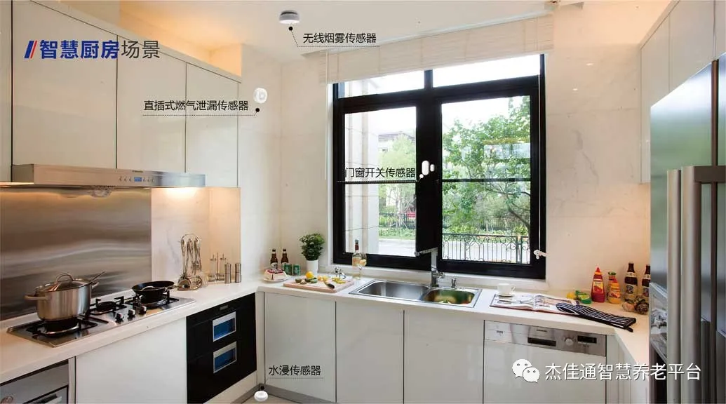 在廚房中安裝煙霧探測(cè)器和燃?xì)庑孤┨綔y(cè)器,防止意外事故的發(fā)生。