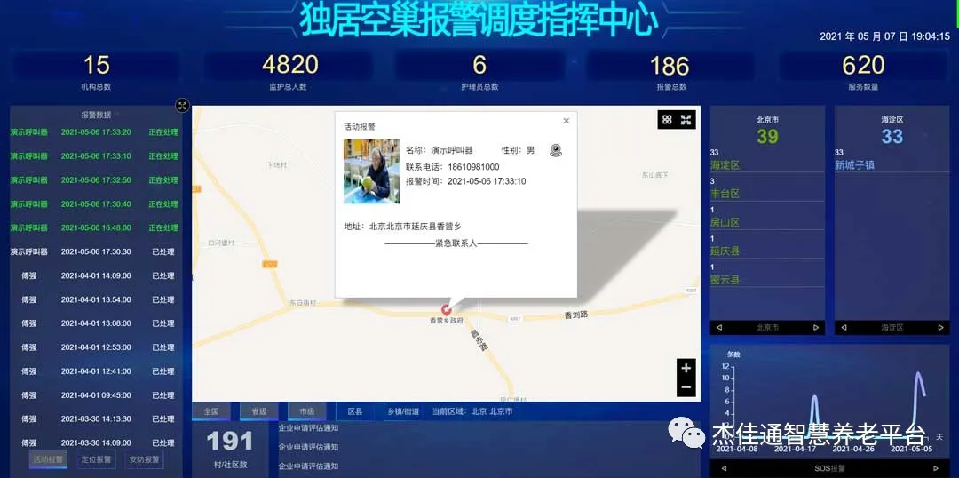 1、在茶幾上、過(guò)道、餐桌旁、廚房?jī)?nèi)粘貼SOS呼叫器或者拉繩SOS呼叫器按鈕。當(dāng)老人出現(xiàn)異常時(shí),老人隨手拍一下,即發(fā)出救助呼叫信息,智慧調(diào)度值班中心大屏上即時(shí)彈出老人的詳細(xì)信息;子女手機(jī)上也即時(shí)提示老人異常信息。