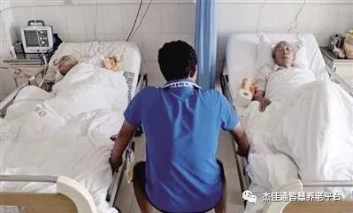 照片中,一個(gè)穿藍(lán)色短袖的男人坐在兩張病床的中間,兩只手用力地握住兩側(cè)病床,在兩邊病倒,打著吊瓶的是他老邁的父母,男人的背影看起來很無助。有網(wǎng)友評(píng)價(jià)說,圖中場(chǎng)景讓人感到絕望。