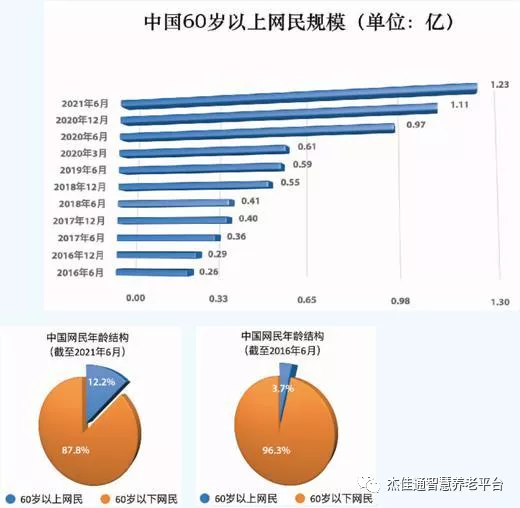 中國互聯(lián)網(wǎng)絡(luò)信息中心發(fā)布的第48次《中國互聯(lián)網(wǎng)絡(luò)發(fā)展?fàn)顩r統(tǒng)計(jì)報(bào)告》顯示,截至2021年6月,中國網(wǎng)民規(guī)模達(dá)10.11億,其中60歲以上網(wǎng)民占比達(dá)12.2%,約1.23億人。而艾媒研究院發(fā)布的《2021年中老年群體觸網(wǎng)行為研究報(bào)告》顯示,51%的中老年日均上網(wǎng)時長超過4小時。