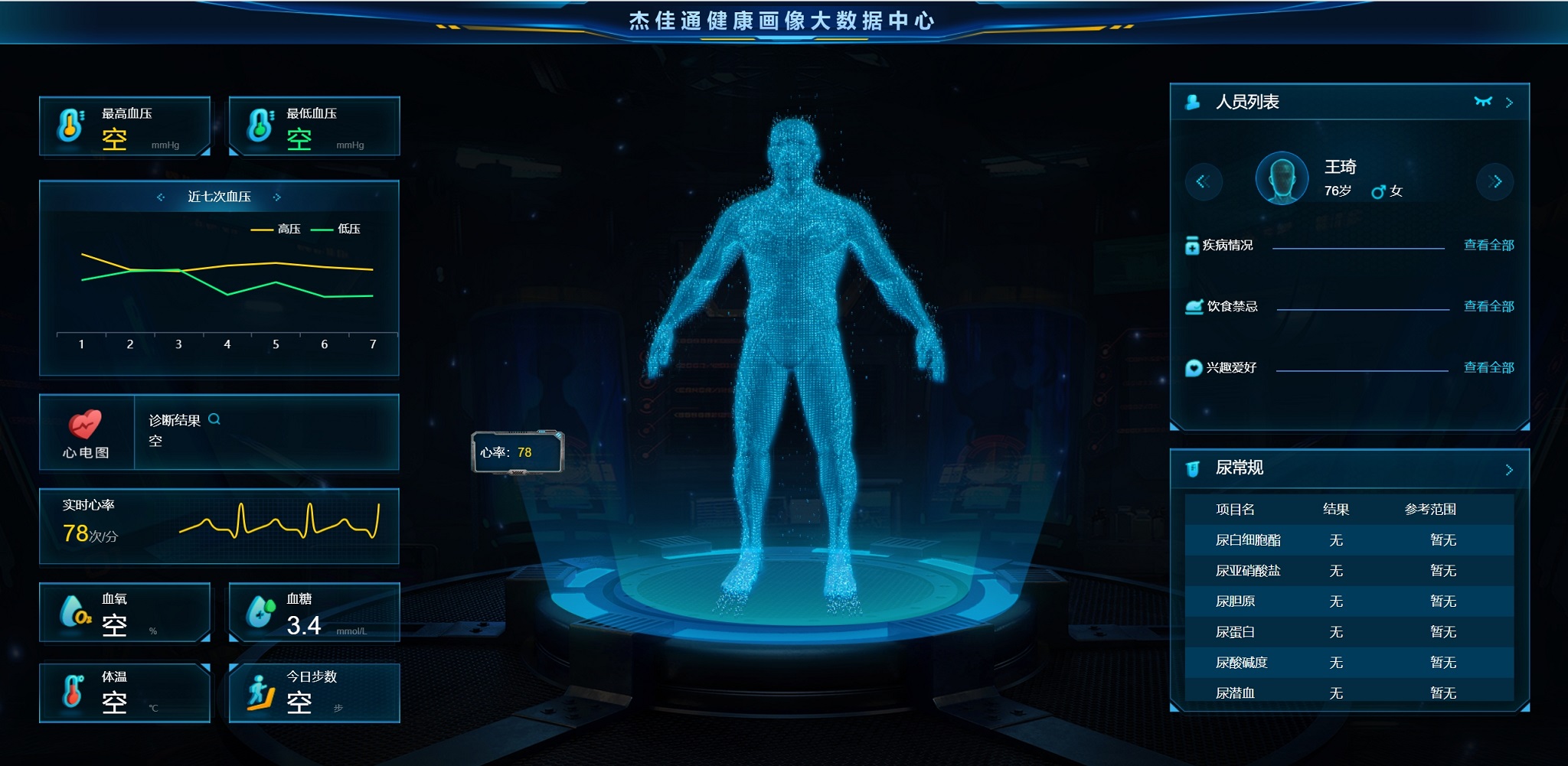 杰佳通智慧養(yǎng)老平臺(tái)遠(yuǎn)程健康監(jiān)控系統(tǒng)(簡(jiǎn)稱JJT-RHM System, JJT- Remote Health Monitoring System),是本著“遠(yuǎn)程監(jiān)控—健康檔案—健康預(yù)警—健康促進(jìn)”的思路設(shè)計(jì)的。遠(yuǎn)程自動(dòng)對(duì)老人各項(xiàng)醫(yī)療測(cè)量指標(biāo)(血壓、血糖、血壓、心電、體重、脂肪、睡眠、計(jì)步等等)的監(jiān)測(cè),及時(shí)發(fā)現(xiàn)異常并通知本人或子女,可以供老人就醫(yī)的醫(yī)院參考,子女和醫(yī)生可以通過APP實(shí)時(shí)查詢。